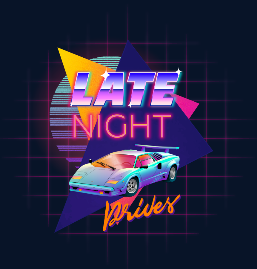 A T-Shirt I designed for a friend and his car enthusiast company Late Night Drives. He wanted that Retro wave look.